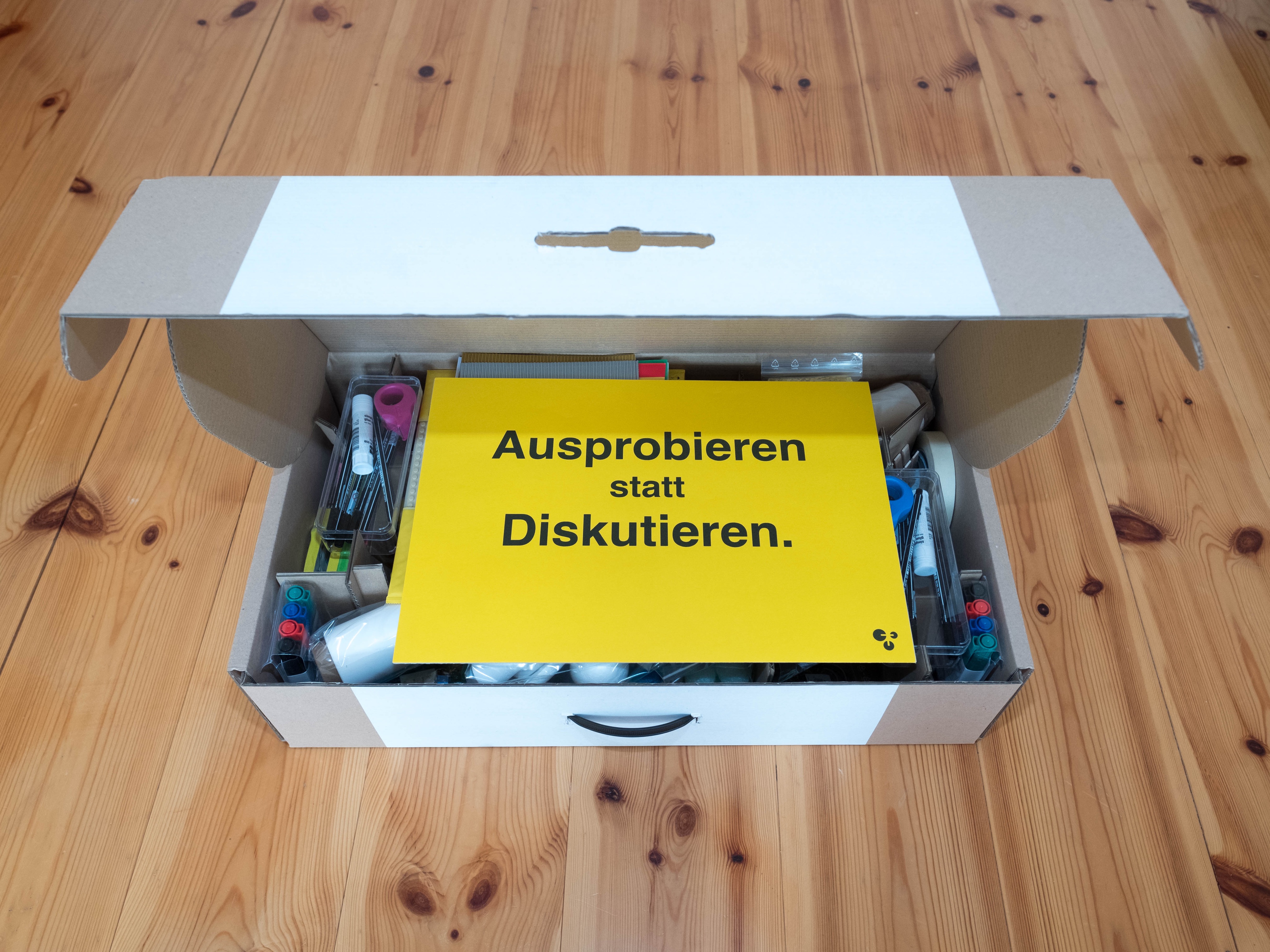 Design Thinking, Moderationsmaterial, Prototyping, Design Thinking Prozess, Hasso Plattner Institut, HPI, D-School, d.school, Stanford, IDEO, Materialsammlung, rapid Prototyping, Prototyp, Box, Agiles Arbeiten, Scrum, Canban, Teamarbeit, Moderationskoffer, Moderation, Coaching, Coach, agile Produktentwicklung, Service Design, Design Sprint, Makerbox, mit den Händen denken, Moderationsunterstützung, Prototypingmaterial
